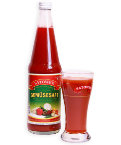 100% Gemüsesaft – Ein besonderer Saft aus einem frischen Gemüse-Mix. Dieser Gemüsesaft wird aus Karottensaft, Rote Bete Saft, Gurkensaft, Selleriesaft, Sauerkrautsaft, Zwiebelsaft, Paprikamark, Salz, Gewürzextrakten und Dillsaft hergestellt. Wichtig: Der Saft ist nicht aus Konzentrat hergestellt. Schmecken Sie den echten Geschmack der verschiedenen Gemüsesorten in einem Mix. Mit jedem Schluck. Die natürlichen Inhaltsstoffe des erntefrischen Gemüses machen diesen Saft zu etwas ganz wertvollem. Schonend verarbeitet – machen wir die verschiedenen Gemüse zu diesem Direktsaft – einem reinen und leckeren Genuss. Ein Gemüsemix für jedermann. Genießen Sie diesen leckeren Gemüsesaft. Ein besonderer Saft aus unserem Hause. Spitzenqualität aus eigener Herstellung. Unser Gemüsesaft wird in einem aufwendigen Verfahren hergestellt. Die Herstellung des hochwertigen Gemüsesaftes durchläuft viele Produktionsschritte. Bei der Abfüllung des Gemüsesaftes wird dieser auf 80°C erhitzt und in unsere umweltfreundlichen Mehrweg-Flaschen abgefüllt.