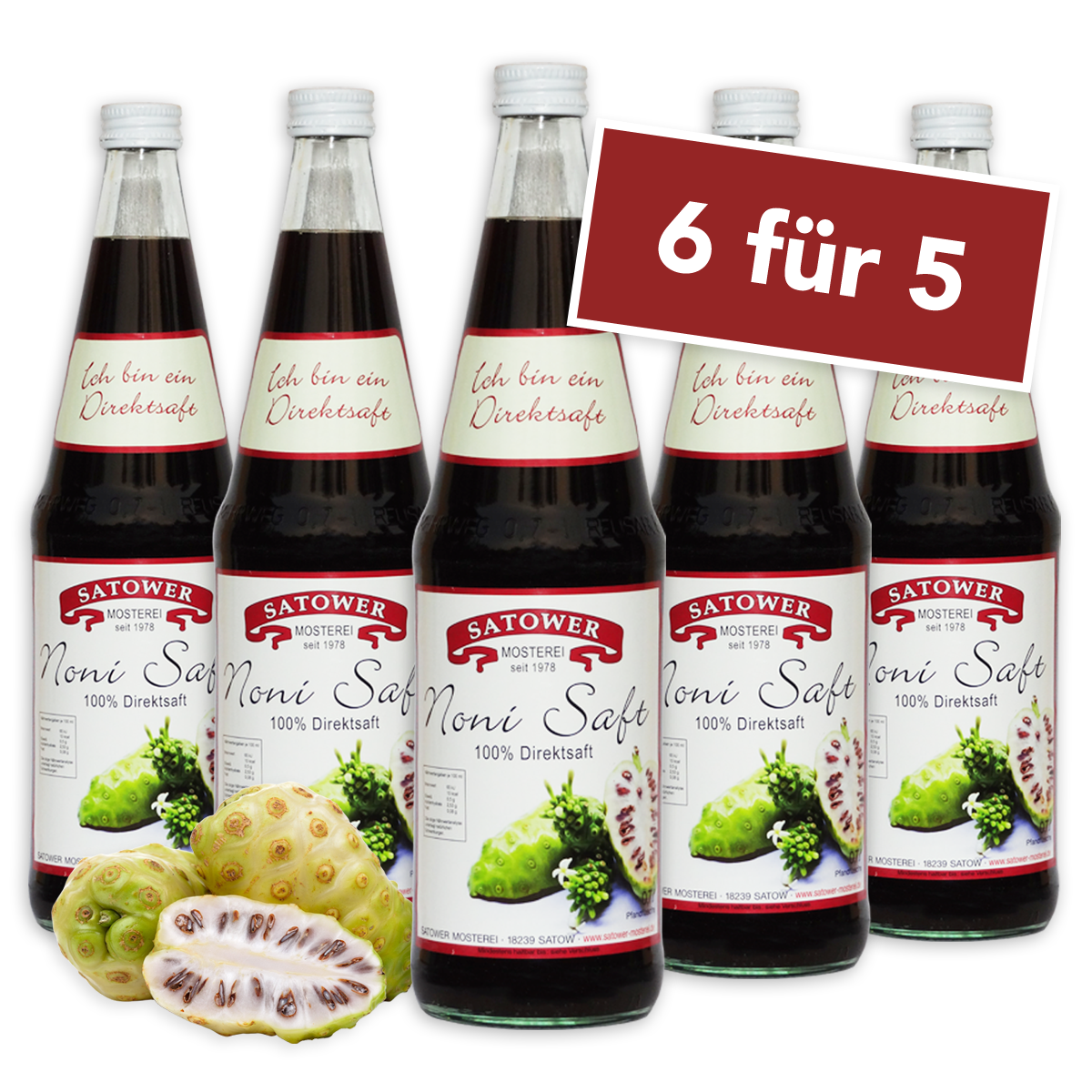 Eine Aktion nur für unsere Kunden: 5 Flaschen besten Noni Direktsaft bestellen und 6 Flaschen erhalten. Sie bekommen somit 1 Flasche geschenkt und sparen über 11 Euro. Jetzt zuschlagen, wir freuen uns Sie beliefern zu dürfen.