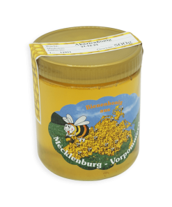 Mecklenburger Akazienhonig – 100% naturreiner Akazienhonig mit dezenter Süße. Zubereitet von fleißigen Bienen heimischer Trachtgebiete. Unser Akazienhonig besitzt eine hellgelbe bis goldgelbe Farbe, hat ein intensives Aroma und einen milden, blumigen Geschmack. Er beinhaltet einen hohen Fruchtzuckeranteil (Fructose) sowie wertvolle Inhaltsstoffe wie Spurenelemente, Mineralien, Vitamin C und B. Ein kostbares Naturprodukt mit klarer, flüssiger Konsistenz.