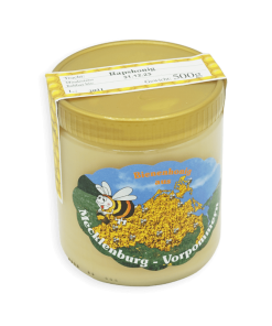 Mecklenburger Rapshonig – 100% naturreiner Rapshonig von der Ostseeküste. Zubereitet von fleißigen Bienen heimischer Trachtgebiete. Unser Rapshonig ist streichzart und besitzt ein mildes, dezentes Aroma. Seine Farbe ist hell, weißlich. Er kristallisiert schnell und beinhaltet besonders viele Glukosemoleküle. Rapshonig ist ein idealer Energielieferant und besonders beliebt. Ein kostbares Naturprodukt in Spitzenqualität.